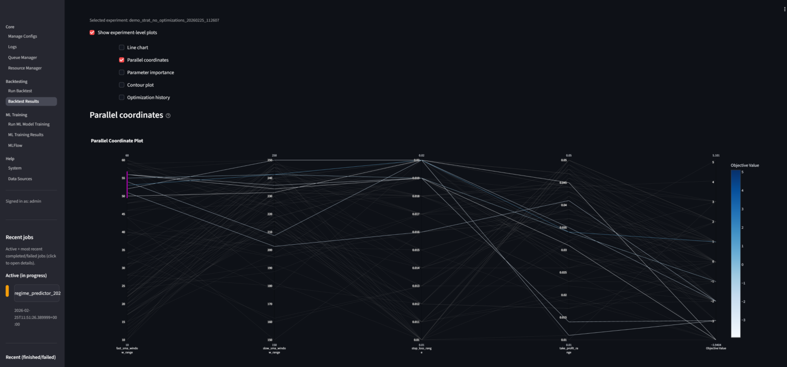 You can see how changes in one parameter ripple through others — and how those combinations drive the objective outcome. High-performing configurations stand out immediately, making it easier to identify stable regions, spot overfitting patterns, and understand trade-offs between variables.